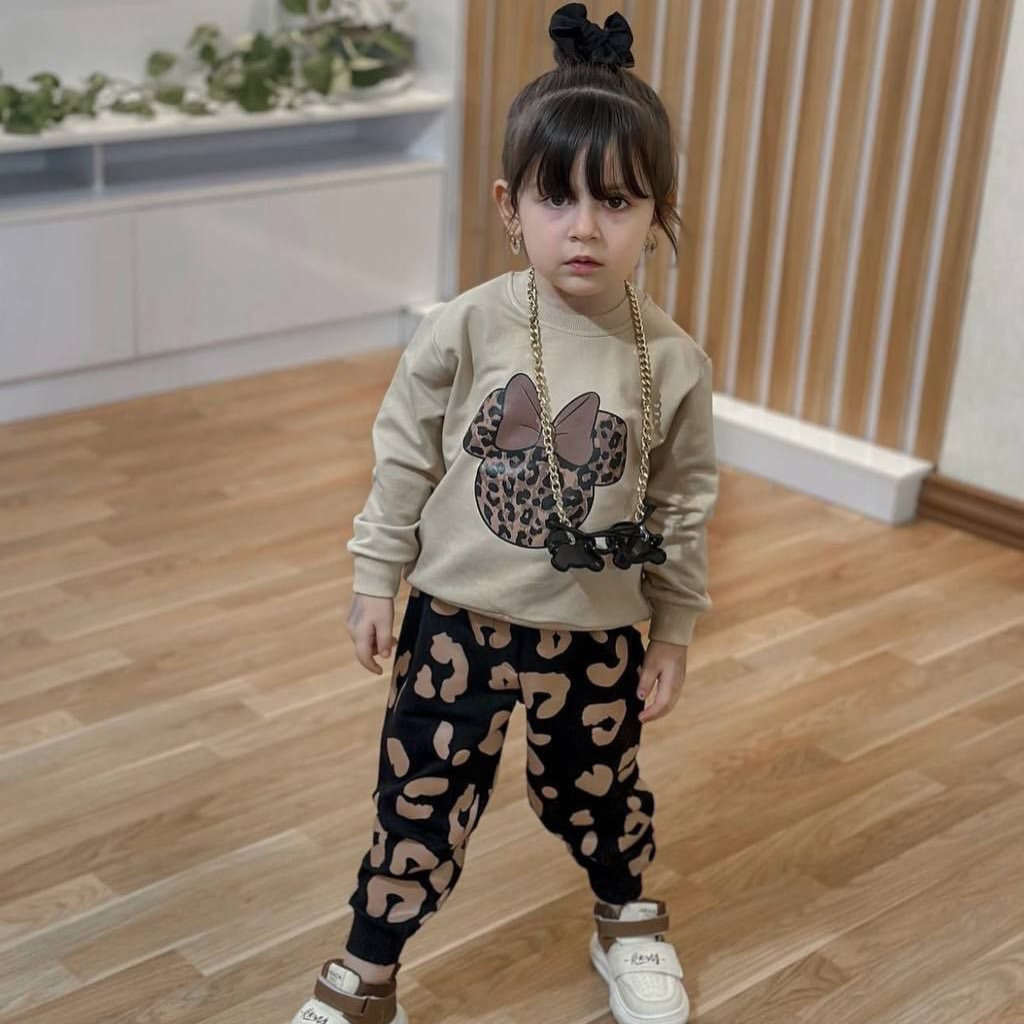 ست دورس و شلوار جنس پنبه لاکردار دخترانه